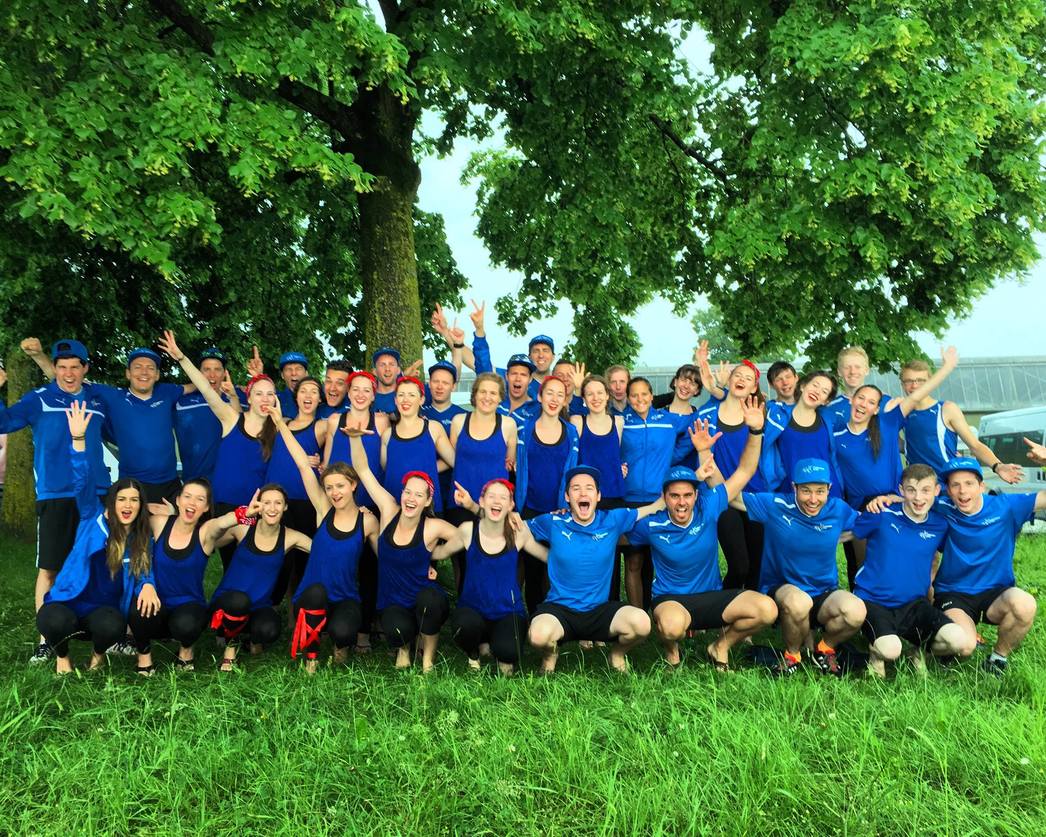 Das Gros der blau-weissen Armada traf am Samstagmorgen zeitig in Thun ein. Bereits ab 09.48 Uhr ging es nämlich mit dem 1. Wettkampfteil los. Verteilt auf die Disziplinen Kugelstossen, Steinheben und Pendelstafette griffen 23 Spiezer Turnerinnen und Turner ins Wettkampfgeschehen ein. Im Kugelstossen, gewiss nicht unsere stärkste Disziplin, resultierte die zufriedenstellende Note 8.02. Gespannt durfte man auf das Resultat im Steinheben sein. Nachdem die Spiezer Steinheber in den letzten Monaten unzählige Trainingsstunden in diese Disziplin investiert hatten, waren die Erwartungen an unsere vier Adonis-Körper gross. Und tatsächlich: Sie holten die Note 9.00, was in dieser Disziplin der Maximalnote entsprach, waren unsere Steinheber doch mit dem leichteren, 18 kg schweren Stein angetreten. Herausragend war die Leistung von Marco Bircher, der als Letzter antrat. Als die Note 9.00 im Trockenen war, wurde die Übung für ihn zur Kür. Mit sage und schreibe 69 Hebungen schwang er klar obenaus. Derweil kämpfte unser 14-köpfiges Pendelstafettenteam auf dem Asphalt um jede Hundertstelsekunde. Die dort erzielte Note 8.84 lag im erwartbaren Bereich.