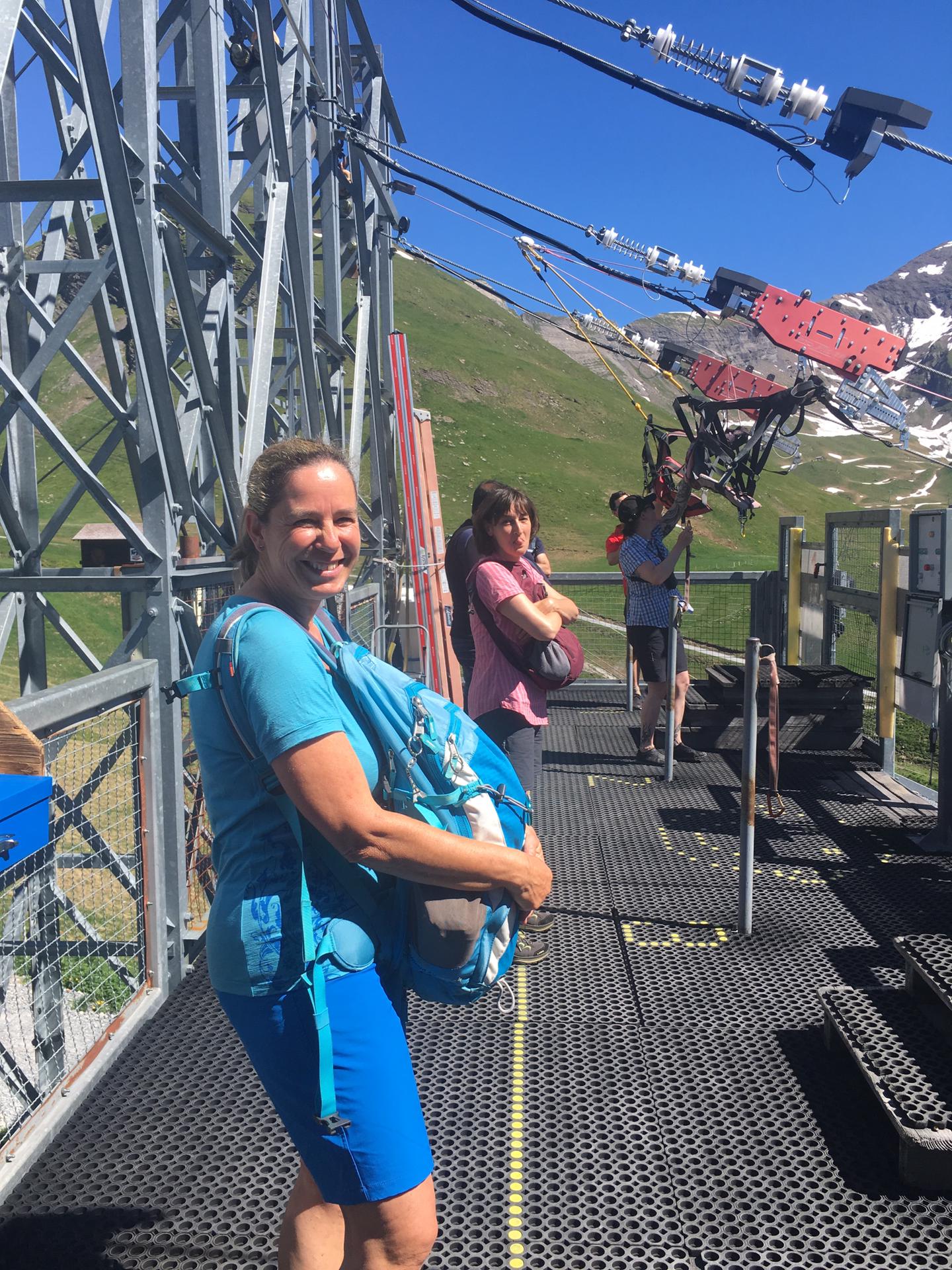 Das Ausflugsziel erfuhren die Teilnehmenden jedoch erst am Treffpunkt am Bahnhof Spiez. Lediglich die mitzubringende „Ausrüstung“ war von Tanja Kurzo, welche den Ausflug organisierte, zum Voraus bekanntgegeben worden. Mit dem Zug reiste die Gruppe dann nach Grindelwald und nach einem kurzen Fussmarsch durchs Dorf mit der Gondelbahn hinauf auf die First, wo bei Kaffee und Gipfeli (manche liessen es sich nicht nehmen, unter der bereits sengenden Sonne eine warme Schoggi zu trinken) zunächst mal das schöne Bergpanorama genossen wurde. Danach stand sanfte Action auf dem Programm. Mit dem First Flieger sausten die Spiezer zunächst mit rund 80 km/h am Seil hängend zur Station Schreckfeld, ehe es mit den Mountain Carts auf drei Rädern weiter Richtung Station Bort ging, wobei hier aufgrund der Strassenverhältnisse eine etwas gemässigtere Geschwindigkeit und eine Sonnenbrille (Staub!) von Vorteil waren. Schon den strahlenden Gesichtern nach zu beurteilen machten diese Aktivitäten, insbesondere die Fahrt mit den Carts, den Beteiligten viel Spass.